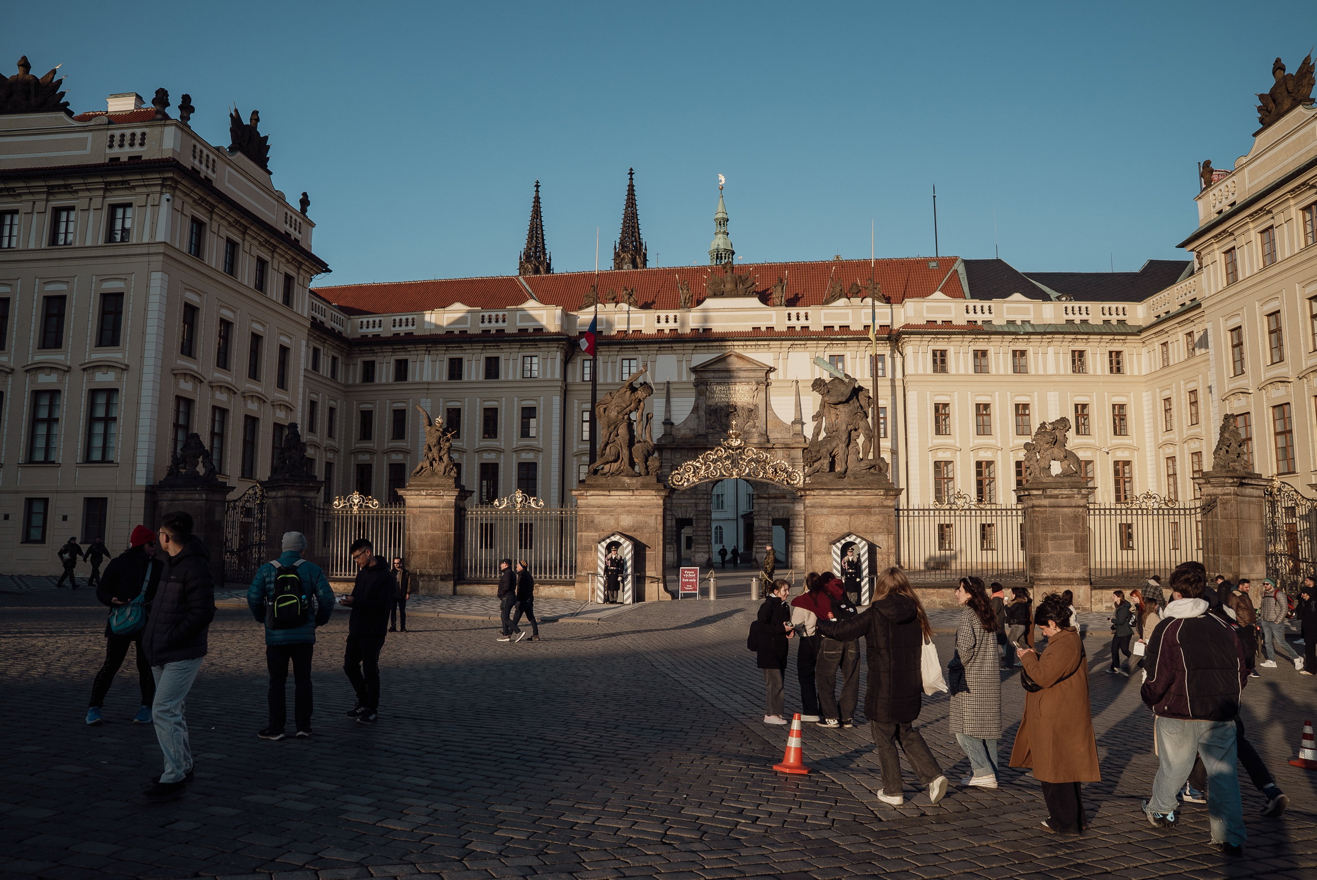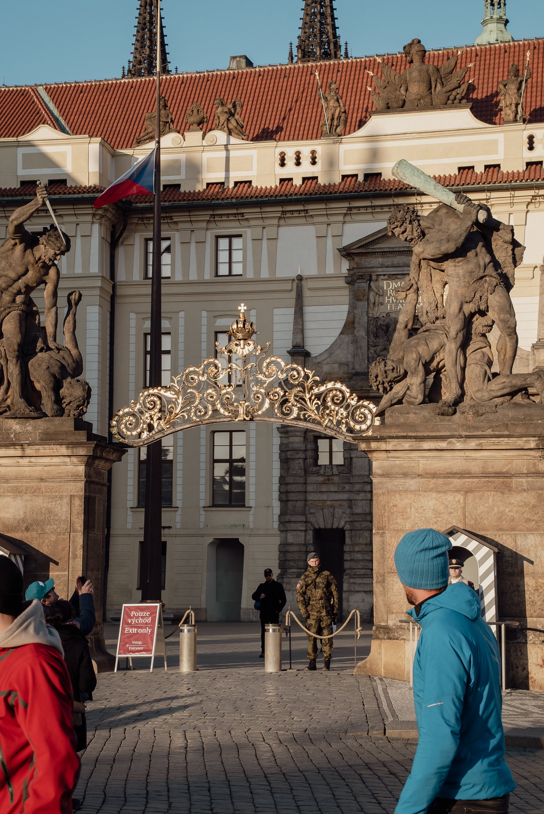 Hlavní bránu do areálu Pražského hradu nechrání jen hradní stráž, ale také dvě sochy obrů z řecké mytologie.