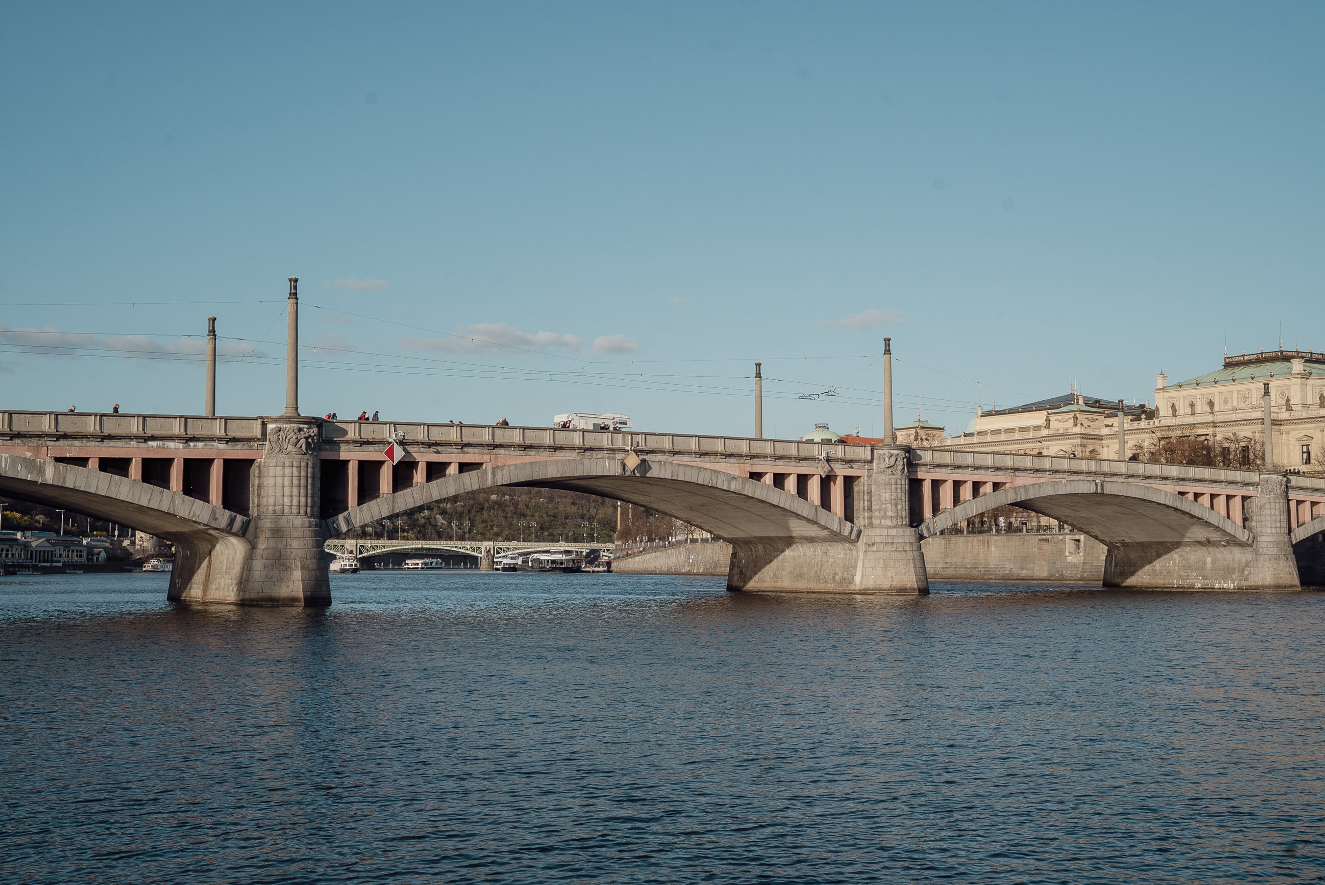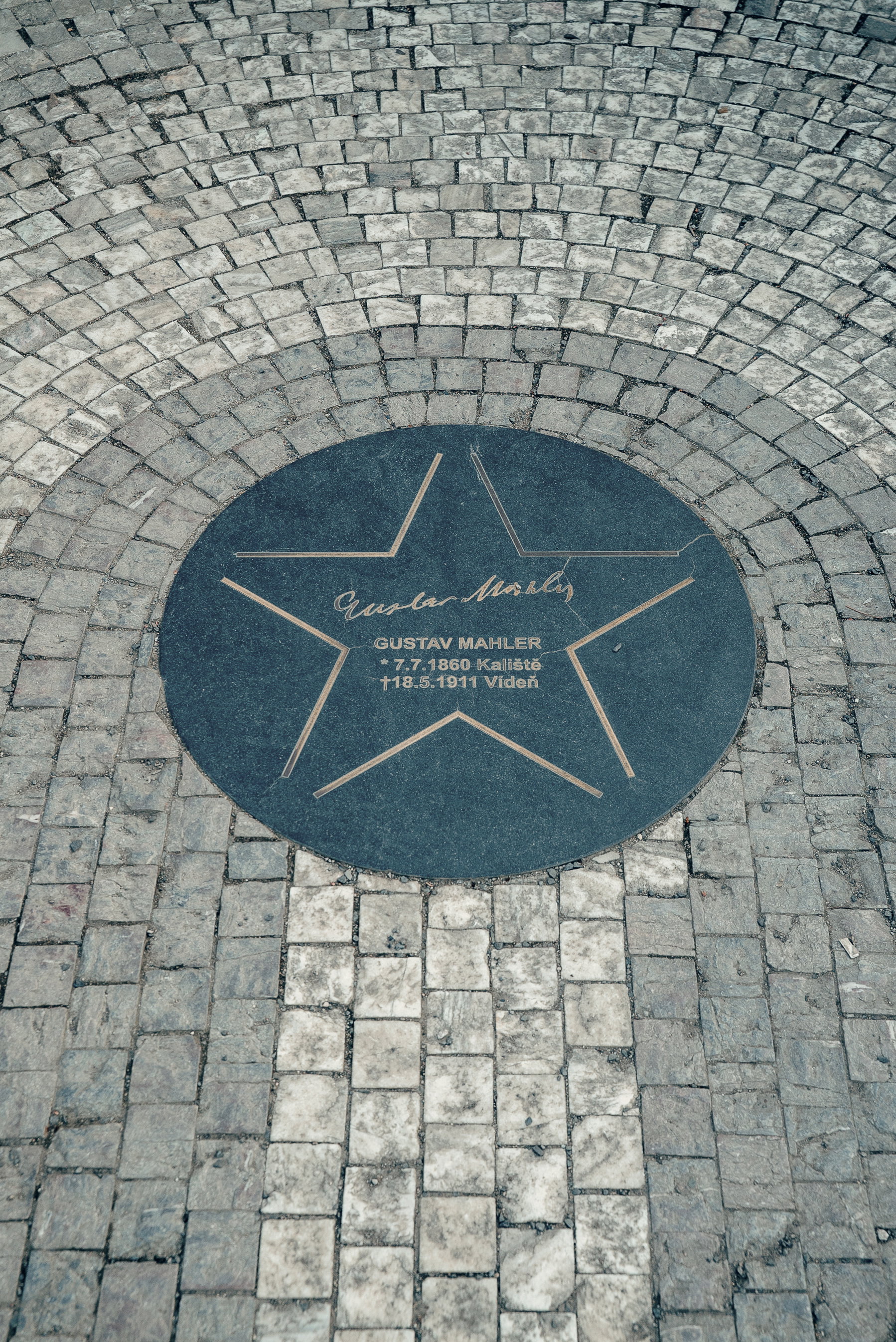 Pokud chcete mít pamětní desku na Mánesově mostě, možná jste sem neměli chodit. Mahler (ani Antonín Dvořák, na jehož hvězdu natrefíte na druhém břehu) přes něj nikdy nepřešel. Když 18. května 1911 zemřel, stavba byla teprve v zárodku.